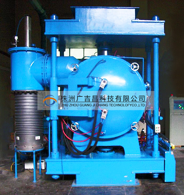 真空爐常用于金屬材料加磁處理。真空熱壓燒結(jié)爐,包括燒結(jié)爐和抽真空部分,燒結(jié)爐包括爐體和裝設(shè)在爐體內(nèi)的加熱室,燒結(jié)爐上安裝有六個引電電極,其特征是在爐體的上、下方分別設(shè)置有油壓機上梁和油壓機下梁,油壓機上梁和油壓機下梁由四個支柱連接成一整體;上壓頭由上水冷壓頭和上石墨壓頭連接構(gòu)成,下壓頭由下水冷壓頭和下石墨壓頭連接構(gòu)成,上壓頭和下壓頭分別從爐體和加熱室的上、下端面上的壓頭通孔、插入爐體內(nèi),其上石墨壓頭和下石墨壓頭分別插入加熱室內(nèi),上壓頭和下壓頭可上、下移動。